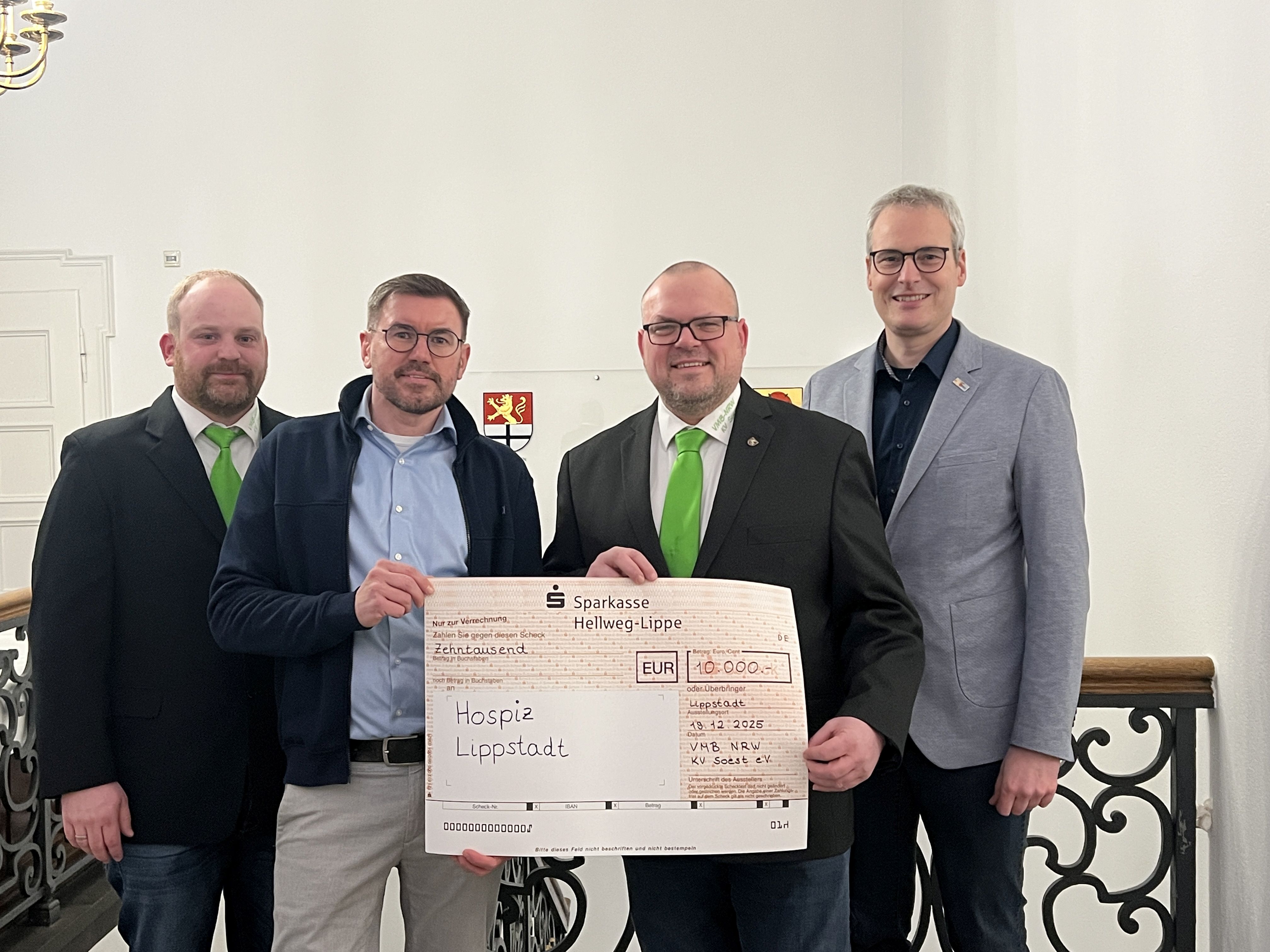 Empfangen hat sie Sebastian Thiemann (Geschäftsführer der Christliche Hospize für den Kreis Soest gGmbH) durch den Kreisvorsitzenden Frank Steffens und Kreisrechner Klaus Brock übergeben in Anwesenheit von Lippstadts Bürgermeister Alexander Tschense.