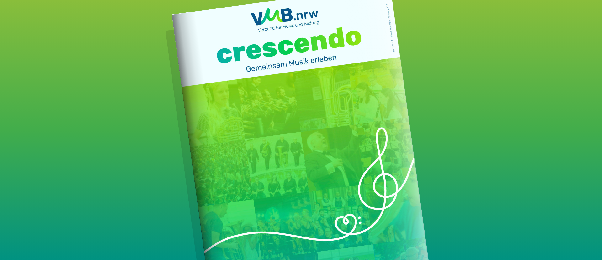 Diese Ausgabe der crescendo ist zugleich die letzte in gedruckter Form. Zukünftig rückt die digitale Kommunikation in den Vordergrund: Social Media Aktivitäten werden ausgebaut und verstärkt, unsere Website wird zur zentralen Informationsplattform und ein neuer Newsletter bietet regelmäßige Updates. Wir danken allen, die in den vielen Jahren an der crescendo mit Herzblut mitgearbeitet haben – intern wie extern. Euer Engagement hat diese Publikation zu dem gemacht, was sie war. Wir freuen uns darauf, die lebendige Kommunikation im neuen VMB.nrw gemeinsam fortzuführen.
