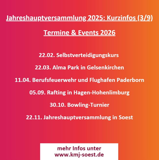 Kurz und Kompakt die wichtigsten Infos aus der Jahreshauptversammlung 2025 der Kreismusikjugend Soest: