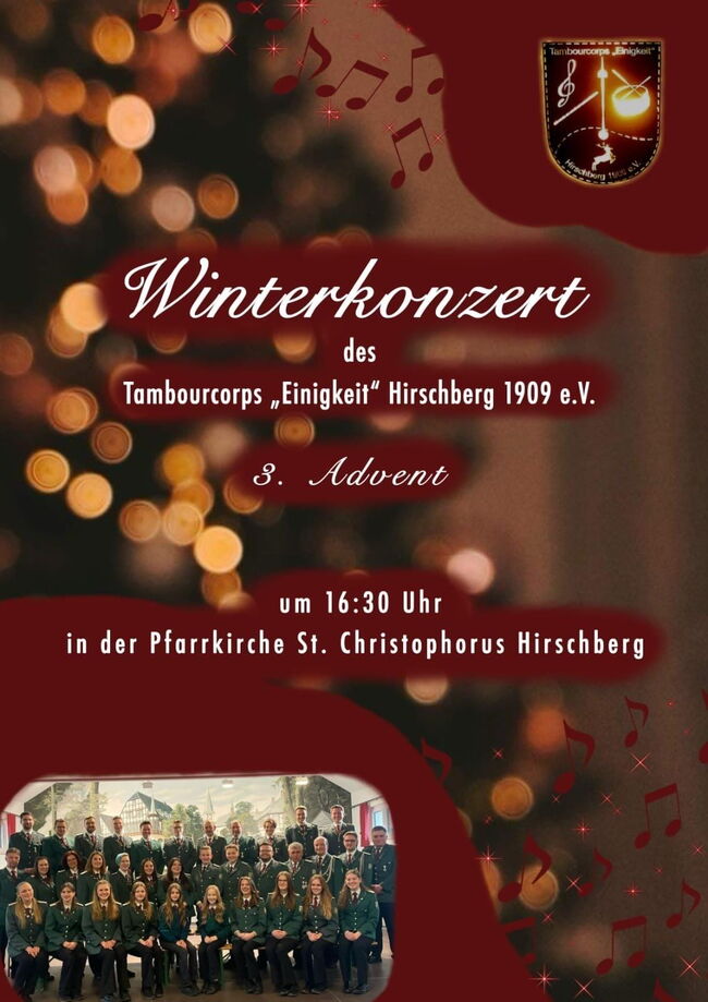 Das Tambourcorps Hirschberg veranstaltet am dritten Adventssonntag ein Konzert in der Kath. Kirche St. Christophorus in Warstein-Hirschberg.