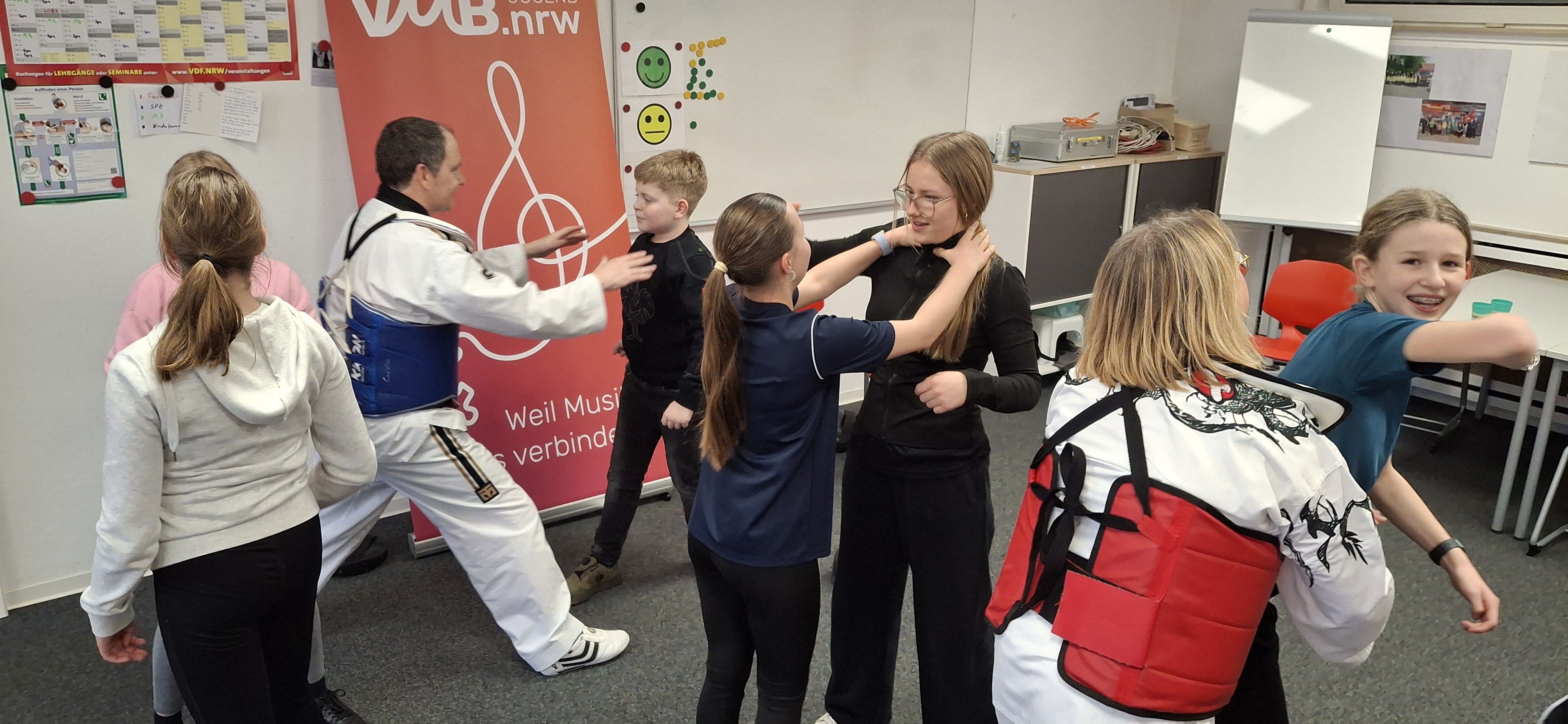 Einen Selbstverteidigungskurs hat die Kreismusikjugend Soest für 20 Teilnehmende aus fünf Musikvereinen des Kreises Soest durchgeführt. Geleitet wurde der Kurs von Susanne Brand und Carsten Holper vom Sportverein Geseke, die entsprechende B-Lizenzen im Taekwondo besitzen. Der Kurs fand in den Räumlichkeiten der Feuerwehr Bad Sassendorf statt, in dem auch der Spielmannszug und der Musikzug proben.